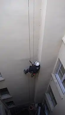 En France, les techniques d'accès et positionnement au poste de travail au moyen de cordes font l'objet d'une interdiction de principe[4], et sont soumises à des conditions strictes d'intervention[5].
