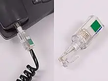 Alors que le cordon était initialement fixé au combiné et à la base, jusqu'à environ 1982, l'utilisation de fiches modulaires de type 4P4C, appelé familièrement RJ-10, de chaque côté a rendu possible les remplacements.