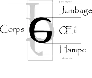 En typographie traditionnelle, le corps est la hauteur de la pièce métallique sur laquelle apparaît en relief la forme du glyphe représentant le caractère imprimé. C’est donc l’addition de la hauteur d’x, des ascendantes, des descendantes (autrement dit la hauteur maximale occupée par le dessin de tous les caractères, y compris avec signes diacritiques), à laquelle s’ajoutent les talus de tête et de pied. En informatique, le caractère métallique n’existe plus mais le dessin de la lettre inclut encore toujours talus de tête et de pied.