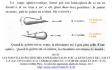 Le corps 3D[3] de moindre traînée avait déjà été approché par Eiffel en 1910 sous la forme du corps « sphéro-conique » essayé dans sa soufflerie du Champ-de-Mars (image ci-contre à droite)[22].