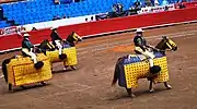 Vient enfin le « train d’arrastre », l'attelage de mules chargé de traîner la dépouille du taureau hors de l’arène[60].