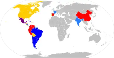 En Amérique latine, la corrida s'est implantée dans les pays où l'empreinte espagnole a été la plus ancienne et la plus forte[43].