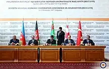 Quatre discussions techniques ont eu lieu sur l'accord sur la route Lapiz-Lazuli (qui couvre une grande partie du corridor de transport Central Asia Regional Economic Cooperation Program CARC n ° 2), dont la dernière a eu lieu à Bakou, les ,, lorsque le texte de l'accord a été finalisé. L'accord de la route Lapis-lazuli a été signé le parallèlement au septième RECCA à Achgabat[3]