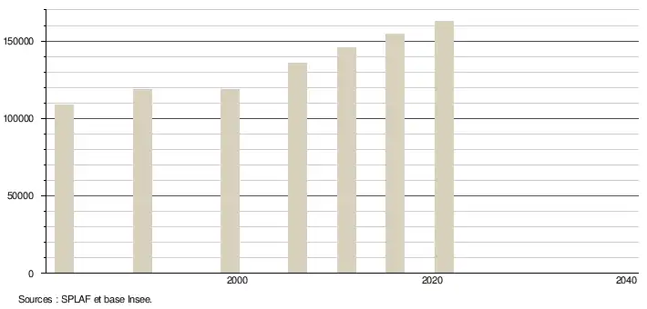 - Population municipale légale en vigueur au 1er janvier 2024, millésimée 2021, définie dans les limites territoriales en vigueur au 1er janvier 2023, date de référence statistique : 1er janvier 2021.