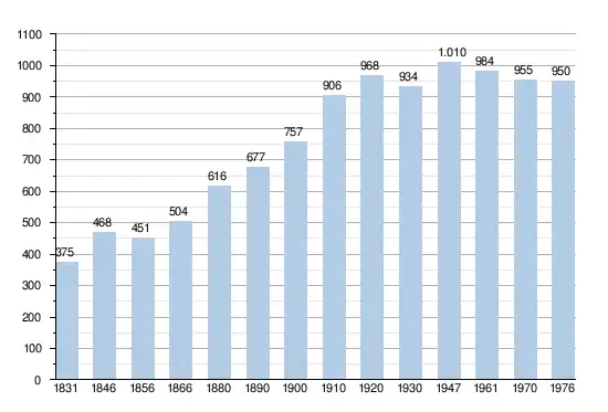 - Sources:INS, Rem:1831 jusqu'en 1970=recensements, 1976= nombre d'habitants au 31 décembre