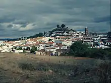 La petite ville se dresse en plein cœur du Parc naturel de la Sierra de Aracena et des pics d'Aroche. Elle est lovée au milieu de paysages de moyennes montagnes au relief suave, dans une région bien irriguée et de ce fait très boisée. La cité est elle-même située au creux d'un vallon dominé par la colline où trône le château de la fin du XIIIe siècle.