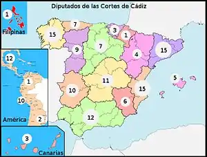 Les Cortes de Cadix ont pour objet de rédiger un corpus législatif de nature libérale qui puisse servir de base à un nouvel ordre social afin de mettre un terme à la société d'Ancien Régime. Le produit de ses travaux n'est autre que la Constitution espagnole de 1812, appelée La Pepa en raison de la date de la promulgation du texte, jour de la saint Joseph (Pepe étant le diminutif familier de José en espagnol). La Constitution de 1812 est le premier texte constitutionnel de l'histoire de l'Espagne.