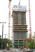 Les premiers plans de construction élaborés sur cette parcelle ont été révélés en 2006 lorsque la Fondation Shalom a nommé l'architecte polonais de premier plan Stefan Kuryłowicz (en) pour concevoir une tour. Peu de temps après, la Fondation a été contrainte, par manque de fonds, de vendre le terrain à Tacit Development. Une nouvelle conception a été préparée par l'architecte allemand Helmut Jahn. Jusqu'en 2011, Hines a été le promoteur du projet, mais Tacit, l'investisseur à l'origine du projet, l'a repris.