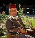 Une ceinture de brocart ou de soie rayée retient la robe au niveau de la taille. La coiffe rigide, pointue, couverte de broderies, appelée chéchia devient indispensable. La diffusion des premiers velours date du XVe siècle[54]. Durant la période ottomane, l'influence des costumes levantins qui pénètre par le biais d'Alger, occasionne une série non-négligeable de mutations[55]. Le caftan est ainsi introduit à l'instar d'autres villes algériennes[56].