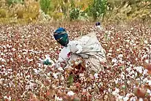 La culture du coton est une ressource économique importante pour l'Ouzbékistan, premier producteur et exportateur de coton de l'ex-URSS. Les producteurs de ce pays ont été accusés d'utiliser pour la récolte le travail forcé des enfants (sous un soleil accablant, pour des rémunérations dérisoires). Malgré les pressions internationales et les interdictions formelles du gouvernement ouzbek d'utiliser le travail des enfants, il apparaît que la réalité sur le terrain reste inchangée[26].