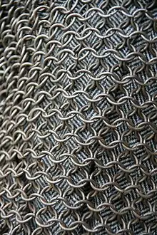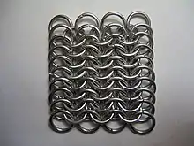 Cette maille inhabituelle en est l'exemple. Elle semble avoir été construite à partir d'une seule barrette tordue en forme de huit, puis soudé[2]. C'est l'extrême limite de la maille annulaire et de la maille plate.