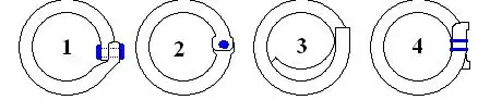 À partir d'un anneau (1) de fil de fer (ou d'acier), superposer les bords en déformant l'anneau (2).