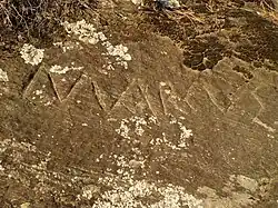 Une chaussée de schiste continue, sur toute la surface, est entaillée par deux ornières parallèles sur une cinquantaine de mètres. L'écartement entre les ornières est constant et mesure 1,45 m.