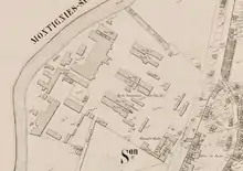 - Le village, quartier qui se situe au nord où se trouve la maison communale. Le quartier fut séparé en deux en 1843 par le passage du chemin de fer (ligne Charleroi-Namur)[6]. Le village ne sera plus relié au sud de la localité que par deux embranchements carrossables et deux passages souterrains pour piétons[6]. En 1827, une verrerie fut construite et deux rangées de maisons pour loger les ouvriers qualifiés. En 1828, quatre hauts-fourneaux et 200 fours à coque furent élevés par la firme Fontaine Spitaels[6]. Une école fut ouverte en 1831, à côté de la maison communale[6]. En 1905, la verrerie a éteint ses fours, l'état belge exproprie des terrains et y installe le « quai de bois » et une partie de la gare de formation de Charleroi-Sud[6],[7];