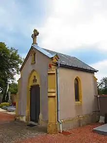 - Une réplique de la grotte de Lourdes est édifiée dans un enclos à côté du cimetière, à la sortie du village, au croisement de la route de Niedervisse. À proximité se situent un calvaire, une statue de Notre-Dame-de-la'Salette, ainsi que les deux monuments aux morts communaux, rappelant les défunts de Coume tombés lors de la Première et de la Seconde Guerre mondiale.