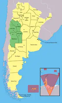 Dans l’armée de terre, les forces étaient plus dispersées géographiquement et les positions idéologiques moins homogènes. Un exemple pouvant servir à illustrer ce point est le cas de la 2e armée, cas significatif eu égard à la participation ultérieure de celle-ci aux événements. Ayant son siège de commandement dans la ville de San Luis, cette 2e armée se décomposait en deux corps (agrupaciones), dont les effectifs comptaient au total quelque 10 000 hommes répartis sur toute la région de Cuyo. Le premier de ces deux corps d’armée était commandé à partir de la ville de Mendoza par le général Héctor Raviolo Audiso, loyal au gouvernement, et couvrait le territoire des trois provinces cuyanas (San Juan, San Luis et Mendoza). Ses détachements étaient : le 1er à Mendoza, sous les ordres du lieutenant-colonel Cabello, de la faction rebelle ; le 2e à Campo de los Andes, sous les ordres du lieutenant-colonel Cecilio Labayru, également rebelle ; le 3e à Calingasta (province de San Juan), sous les ordres du colonel Ricardo Botto, loyaliste ; enfin le 4e à San Rafael, sous les ordres du colonel Di Sisto, rebelle[23].