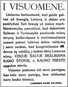 - (en) Cet article est partiellement ou en totalité issu de l’article de Wikipédia en anglais intitulé « 1926 Lithuanian coup d'état » (voir la liste des auteurs).