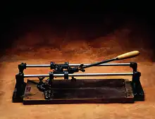 Il consiste en un plateau, souvent rembourré, sur lequel on place le carreau, et d'un levier coulissant muni d'un diamant de verrier et d'une pièce en Y.