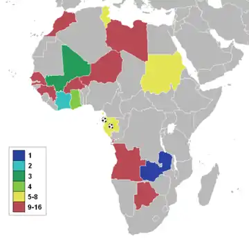 | Co-pays hôte, qualifié d'office | 4 (1994, 1996, 2000, 2010) | ||