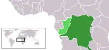 Localisation du Moyen-Congo (vert clair) et du Congo belge (vert foncé).