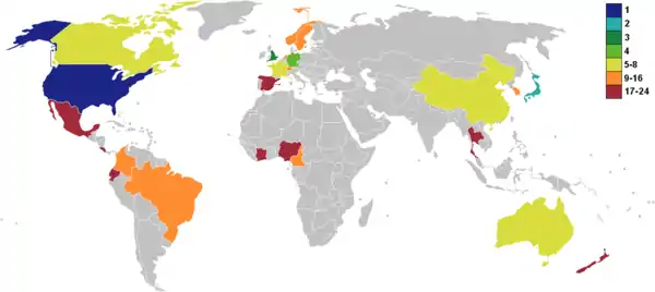 Amérique du Nord, Centrale et Caraïbes (CONCACAF) 4,5 places[10] dont une au pays hôte |