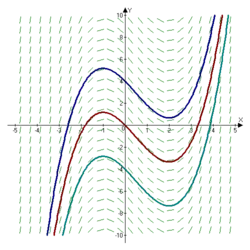 La définition ci-dessus d'une courbe intégrale α pour un champ vectoriel X, passant par p au temps t 0, revient à dire que α est une solution locale au système d'équations différentielles ordinaires avec pour valeur initiale