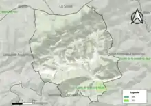 L'occupation des sols de la commune, telle qu'elle ressort de la base de données européenne d’occupation biophysique des sols Corine Land Cover (CLC), est marquée par l'importance des forêts et milieux semi-naturels (84,8 % en 2018), en augmentation par rapport à 1990 (82,2 %). La répartition détaillée en 2018 est la suivante : forêts (84,3 %), zones agricoles hétérogènes (12,1 %), prairies (1,8 %), zones urbanisées (1,2 %), milieux à végétation arbustive et/ou herbacée (0,5 %)[22]. L'évolution de l’occupation des sols de la commune et de ses infrastructures peut être observée sur les différentes représentations cartographiques du territoire : la carte de Cassini (XVIIIe siècle), la carte d'état-major (1820-1866) et les cartes ou photos aériennes de l'IGN pour la période actuelle (1950 à aujourd'hui)[Carte 2].