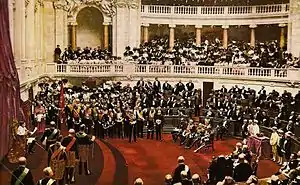 Durant l'Union ibérique, les rois de la dynastie de Habsbourg (c'est-à-dire Philippe Ier, Philippe II et Philippe III de Portugal) n'était pas couronné, en accord avec la tradition espagnole, mais continuaient d'être acclamé. Le dernier roi portugais couronné fut Jean IV qui à l'issue de son couronnement posa sa couronne sur la tête d'une statue de la Vierge Marie et la déclara "véritable reine de Portugal"[1]. Aucun roi après lui ne porta une couronne sur sa tête, mais ces-dernières étaient encore utilisées et posée à côté du souverain lors de l'acclamation[2].
