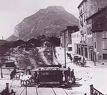 Le , afin de faciliter le déplacement des ouvriers depuis la ville, le cours Berriat tout proche des usines est desservi par la deuxième ligne de tramway de Grenoble, la ligne à vapeur Grenoble-Veurey, la première ayant été mise en service quelques mois auparavant en direction d'Uriage-les-Bains. Afin de poursuivre son tracé sur Fontaine, la SGTE préfère faire franchir la rivière au tramway au niveau du pont métallique, impliquant la création de la nouvelle rue Diderot, reliant le cours Berriat à ce pont[6]. À partir de cette époque, les immeubles construit le long du cours offrent la possibilité à de nombreux commerces d'ouvrir leurs portes donnant au cours son aspect commercial. Le , une autre ligne de tramway appelée Tramway du Cours Berriat est mise en service[7]. Son tracé n'est que de deux kilomètres car son terminus se situe au pont du Drac près de la mégisserie, mais sa traction est électrique et sa voie double est la seule de Grenoble. À partir du 23 avril 1911, une troisième ligne utilise le cours, celle du tramway Grenoble - Villard-de-Lans mais dont la partie Seyssins-Villard ne sera opérationnelle qu'entre juillet 1920 et avril 1949[8].