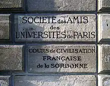 - Cet article est partiellement ou en totalité issu de l'article intitulé « Société des amis des universités de Paris » (voir la liste des auteurs).