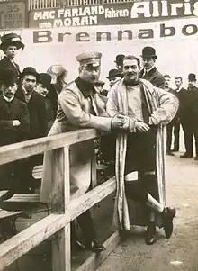 En Allemagne, les Six Jours - « cette chose hybride étrange, douteuse entre le sport et la variété »[56] - sont considérés comme une horreur par le national-socialiste, ce mélange proscrit de sport professionnel et de plaisir importé des États-Unis, soi-disant principalement par les Juifs. Ainsi, le , Herbert Oberscherningkat, rédacteur sportif sur le journal quotidien national-socialiste Der Angriff lance une attaque : « Ceux qui pouvaient jeter un œil derrière les coulisses, savent que c'était en premier lieu des Juifs qui intervenaient comme organisateurs. À l'époque de la plus grande expansion du pouvoir juif, l'engouement pour les Six Jours étaient au plus haut en Allemagne. »[57]. Pourtant, l'affirmation selon laquelle les courses de six jours sont exploitées principalement par des Juifs est erronée[58].