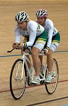 La course de tandem est une épreuve de cyclisme sur piste qui oppose des équipes de deux coureurs sur des tandems.