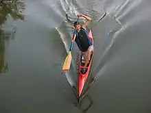 Les bateaux de course en ligne -kayak ou canoë- sont dotés d'une coque en V, profilée et extrêmement instable permettant d'optimiser la glisse. Le kayak comporte un gouvernail, actionné au moyen d'une barre (appelée barre de pieds) située sur le cale-pied.