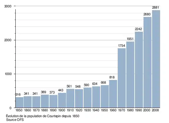 Le graphique suivant résume l'évolution de la population de Courtepin entre 1850 et 2008[5] :