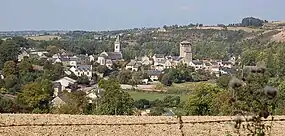 Blason | Parti : au 1er d'azur au lion d'or et au chef du même chargé de trois étoiles d'azur, au 2e de gueules à la tour d'argent maçonnée de sable, le tout posé sur une champagne de gueules chargée d'un dolmen d'argent[7]. |