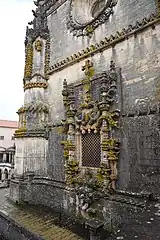 Fenêtre de style manuélin donnant sur la nef de l'église du Couvent du Christ vu du cloître de Sainte Barbe.