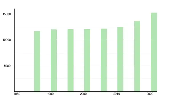 Le recensement de 2021 y dénombre 15 057 habitants[2].