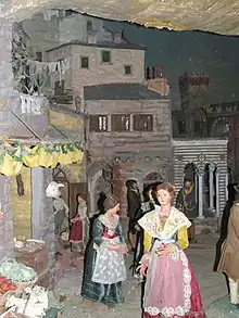 La crèche génoise connaît son apogée au siècle suivant avec la reproduction de la grotte de Bethléem et de tous ses personnages. Cependant, il difficile de dater son usage chez les particuliers; et c'est seulement à partir de la deuxième moitié du XVIIIe siècle, que probablement la tradition de la crèche se diffusa - des confraternités religieuses vers les familles patriciennes - créant, ainsi, de nombreux ateliers spécialisés dans la sculpture de statuettes en bois. Les sculpteurs génois de l'époque se spécialisèrent en deux typologies de santons : les santons de bois sculptés en ronde-bosse entièrement peints, et les santons de bois décorés et revêtus d'habits de tissus.