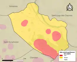 La commune est vulnérable au risque de mouvements de terrains constitué principalement du retrait-gonflement des sols argileux[16]. Cet aléa est susceptible d'engendrer des dommages importants aux bâtiments en cas d’alternance de périodes de sécheresse et de pluie. La totalité de la commune est en aléa moyen ou fort (90 % au niveau départemental et 48,5 % au niveau national). Sur les 46 bâtiments dénombrés sur la commune en 2019, 46 sont en aléa moyen ou fort, soit 100 %, à comparer aux 83 % au niveau départemental et 54 % au niveau national. Une cartographie de l'exposition du territoire national au retrait gonflement des sols argileux est disponible sur le site du BRGM[17],[Carte 2].