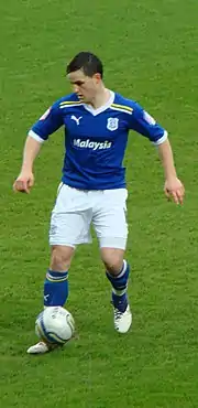 Le , il est recruté par Cardiff City pour une durée de trois ans[4] afin de pallier le départ du milieu offensif Chris Burke[5], malgré un intérêt manifesté par le club écossais des Rangers[6]. Le joueur indique que son choix est motivé par son désir de quitter l'Écosse afin de jauger sa valeur dans le championnat anglais[1]. Il joue son premier match officiel sous ses nouvelles couleurs le à l'occasion de la rencontre West Ham-Cardiff City (victoire de Cardiff City 0-1)[7].