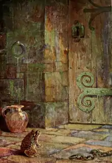 Une des plus fameuses représentations du crapaud dans l'art gothique sont les trois gros crapauds qui s'accrochent aux plis du manteau du Tentateur de la cathédrale Notre-Dame de Strasbourg[35]. Le crapaud est ici le signe de la nature diabolique du Tentateur[36].