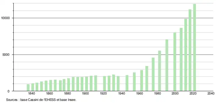 L'évolution du nombre d'habitants est connue à travers les recensements de la population effectués dans la commune depuis 1836. Pour les communes de plus de 10 000 habitants les recensements ont lieu chaque année à la suite d'une enquête par sondage auprès d'un échantillon d'adresses représentant 8 % de leurs logements, contrairement aux autres communes qui ont un recensement réel tous les cinq ans[21],[Note 4].