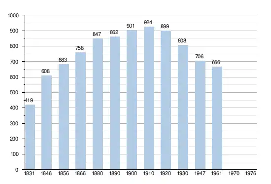 - Sources:INS, Rem:1831 jusqu'en 1970=recensements, 1976= nombre d'habitants au 31 décembre