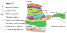 - Arc volcanique cadrant à l'ouest[31],[32],[33] - Marge continentale cadrant dans l'est |