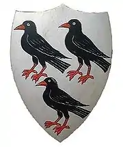 On retrouve trois craves sur les armoiries de l'archevêque Thomas Becket[77], et ils sont donc quelquefois appelés « beckits » en héraldique, pour créer un jeu de mots[78]. En raison de sa relation au saint, la ville de Canterbury a également des craves à bec rouge sur son blason[79]. Six craves apparaissent sur les armoiries des comtes d'Onslow, de Guildford dans le Surrey[80].