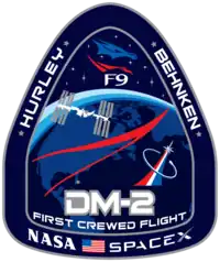 La première mission du Crew Dragon, baptisée SpX-DM1 est lancée le depuis le pas de tir 39A du Centre spatial Kennedy. Ce vol sans équipage a pour objectif de vérifier le fonctionnement du vaisseau durant les phases critiques du vol. Il s'amarre avec l'ISS le , 27 heures après le lancement[42], et reste amarré pendant quatre jours avant de quitter la station le . La mission est un succès et le vaisseau amerrit quelques heures plus tard au large de la Floride où il est récupéré par un navire qui le ramène à la base de Cape Canaveral. Là il doit être examiné, remis en état puis préparé pour le test du système de sauvetage programmé[43].