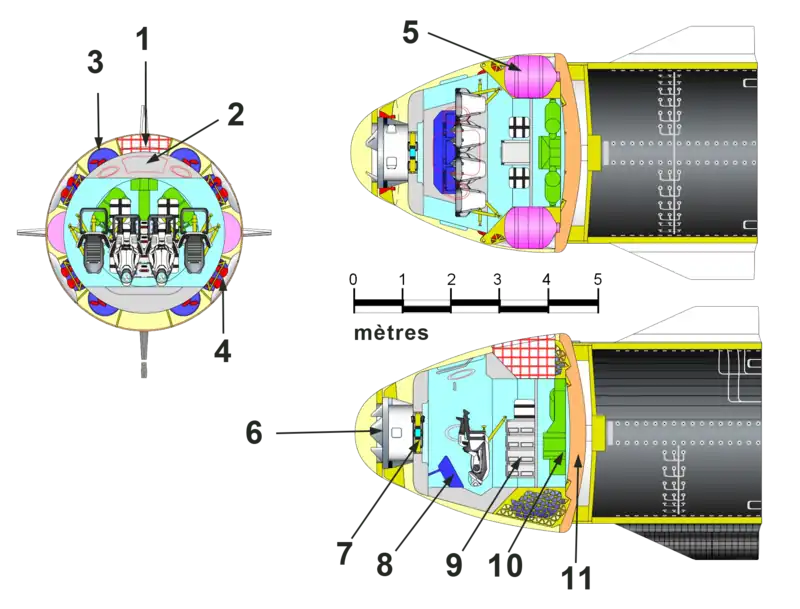 | Diamètre externe | 4,56 m | 3,7 m. | 2,72 m (module descente 2,2 m) |