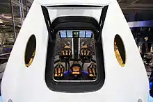 Une première maquette du Crew Dragon avec ses aménagements intérieurs est présentée publiquement en [24].