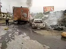 Dans le même mois, les séparatistes connaissent également des succès : le 9 septembre, plus de 50 séparatistes mènent trois attaques coordonnées, sur des cibles multiples à Oku, brûlant le commissariat de police, détruisant les biens de l'officier divisionnaire adjoint, volant un fourgon de police et enlevant trois officiers de police[153]. À Bali, des séparatistes tuent un chauffeur de bus et détruisent cinq bus de la compagnie « Amour Mezam » ainsi qu'un autre bus de marque coaster et deux camions plateaux[154]. Le 11 septembre, des affrontements entre l'armée et les séparatistes éclatent à Buéa, faisant quatre morts dont un policier[155]. Près de la ville de Bali, dans la région du Nord-Ouest, l'armée mène un raid contre les positions des séparatistes, tuant quinze d'entre eux, selon une source policière[156]. Le 17 septembre, un commando d'hommes armés attaquent une école à Buéa, faisant 20 blessés[157]. Le 18 septembre, Amnesty International authentifie deux vidéos montrant un gendarme décapité par des séparatistes[158]. Le 24 septembre, deux civils sont abattus à Buéa[159]. Une tentative d'enlèvement du Fon de Buéa a également lieu[160]. Le 26 septembre, 82 détenus s'évadent lors de l'attaque de leur prison à Wum. L'attaque est revendiquée par le groupe séparatiste « Ambazonia Restoration Forces »[161]. Dans la nuit du 26 au 27 septembre, des séparatistes présumés attaquent un commissariat du quartier Mile 4 à Limbé, tuant huit personnes dont deux policiers[162].