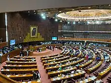 La décision de dissoudre l'assemblée est particulièrement controversée en raison de la mention explicite dans l'article 58 du fait qu'un Premier ministre « contre lequel un avis de résolution de vote de défiance a été donné à l'Assemblée nationale mais n'a pas été voté » n'a pas le pouvoir mentionné ci-dessus de conseiller au Président de révoquer l'Assemblée[29]. Plus tard dans la journée, un banc de trois membres de la Cour suprême comprenant le juge en chef du Pakistan Umar Ata Bandial (en) ainsi que les juges Ijazul Ahsan (en) et Muhammad Ali Mazhar (en) a déclaré que la juridiction examinerait les actions du vice-président[30]. Le même jour, la coalition d'opposition du Mouvement démocratique pakistanais a tenu une session non-officielle à l'Assemblée nationale après que la chambre a été ajournée et a passé le vote de défiance contre Imran Khan, le déclarant réussi avec 197 voix pour 172 nécessaires[31].
